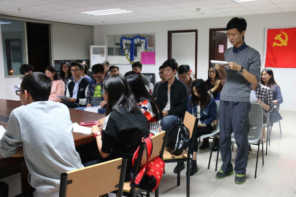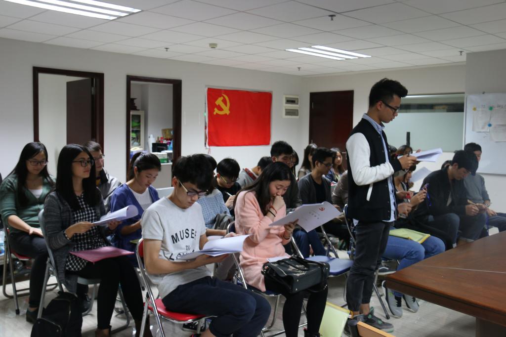 2015年11月4日晚八点半,我系学生党支部预备党员转正暨发展对象通表大会在行政楼405顺利举行。出席本次大会的人员有:系党总支副书记、学工助理蒋大锐老师,系教职工党支部书记王忍老师,系学生党支部书记蒋云丽老师,全体学生党员及6名发展对象。