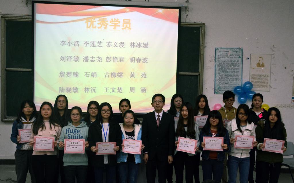 接着,由王忍老师为获得第一期青年马克思主义培训班“优秀学员”称号的学员颁奖。本次青马班优秀学员名单如下:李小活、李莲芝、苏文漫、林冰媛、詹楚翰、石娟、古柳嫦、胡春波、陆晓敏、林沅、王文楚、潘志尧、彭艳君、周涵、黄苑。