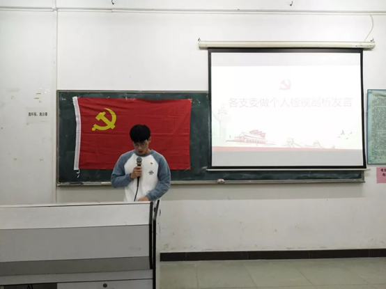 大会第七项议程党总支统战委员官志豪老师点评发言。官志豪老师表示本次会议准备工作充分、有序,全体党员能积极发言,全面仔细查找自身问题,准确、透彻剖析问题,并对全体党员真实客观的发言和敢于提出建议表示赞许。他强调,在今后工作中,要抓牢问题整改,全体党员齐心协力扎实做好落实工作;要做好密切联系群众的工作,深入群众所想所需所求;不断增强组织观念、责任意识和理论素质,坚定理想信念。同时,作为学生党员要起到先锋模范作用,严格要求自己,要履行党员职责和党员义务,希望大家不忘初心,砥砺前行!
