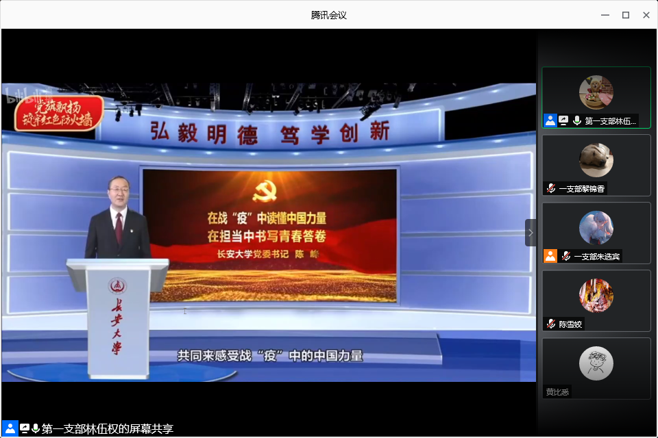 为深入学习战“疫”精神,我院党总支于2020年8月5日上午10:00组织师生党员、发展对象、入党积极分子,以腾讯会议形式观看全国高校党组织战“疫”示范微党课学习,以不断增强我院师生党员的责任意识和担当精神。