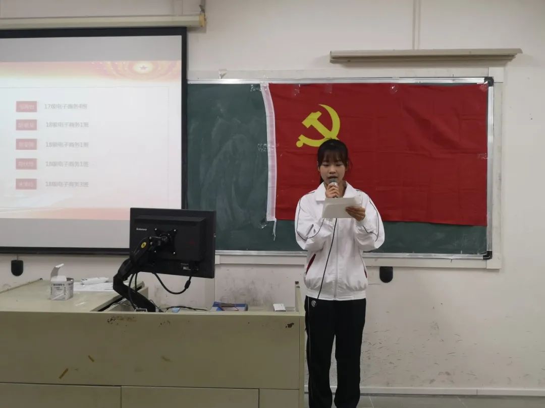 讨论发展对象的入党问题,首先是19名发展对象依次上台宣读入党志愿书,汇报个人在被发展培养期间的思想、生活、学习、工作等方面的情况,同时,他们表明自己坚定的信仰,积极向党组织靠拢的立场,并向党组织郑重提出转预备申请。随后与会的正式党员讨论发展对象的发展问题,拥有表决权的党员逐一对19名发展对象进行不记名投票表决。经表决,一致同意接收林健航等19名同志为中共预备党员。