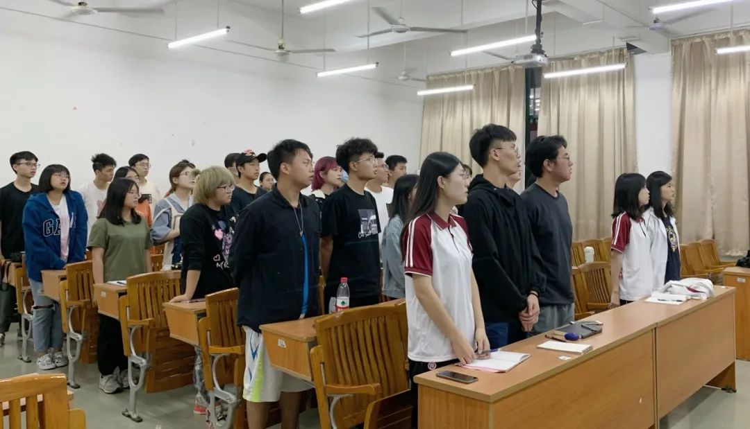 全体人员起立,共同奏唱团歌。