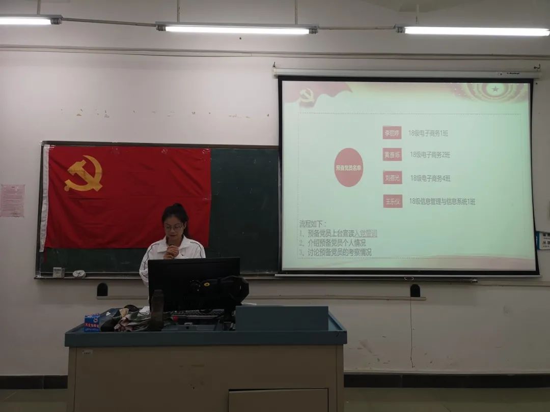 2020年11月23日17:45,数据科学学院学生第二党支部于励志楼D302教室召开预备党员转正大会,大会由方智峰同志主持,学生第二党支部书记官志豪老师、党支部全体党员参与了本次会议。
