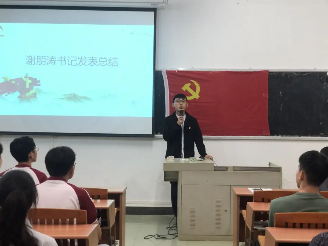 谢朋涛老师对按期转为正式党员的同志们给予肯定和表示祝贺的同时,强调作为一名学生党员,在以后的学习、工作、生活中要戒骄戒躁,加强政治学习,提高政治站位,提升党性修养。希望党员们能够不忘入党初心,以身作则,始终以一名优秀党员的标准严格要求自己。