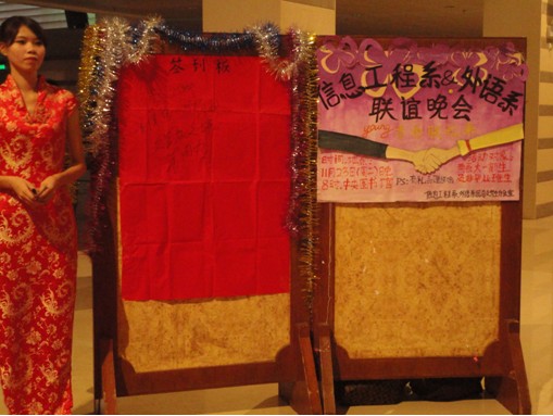 20101123晚,由信息工程系与外语系联袂举办的青春联起来联谊晚会在我校中央图书馆大厅圆满落下帷幕。广东商学院华商学院信息工程系骆耀祖主任,信息工程系辅导员吴泽佳老师,外语系中山祥老师、常莹老师,潘旭老师及各位老师和全体信息工程系、外语系大一学生等观看了本次晚会。
