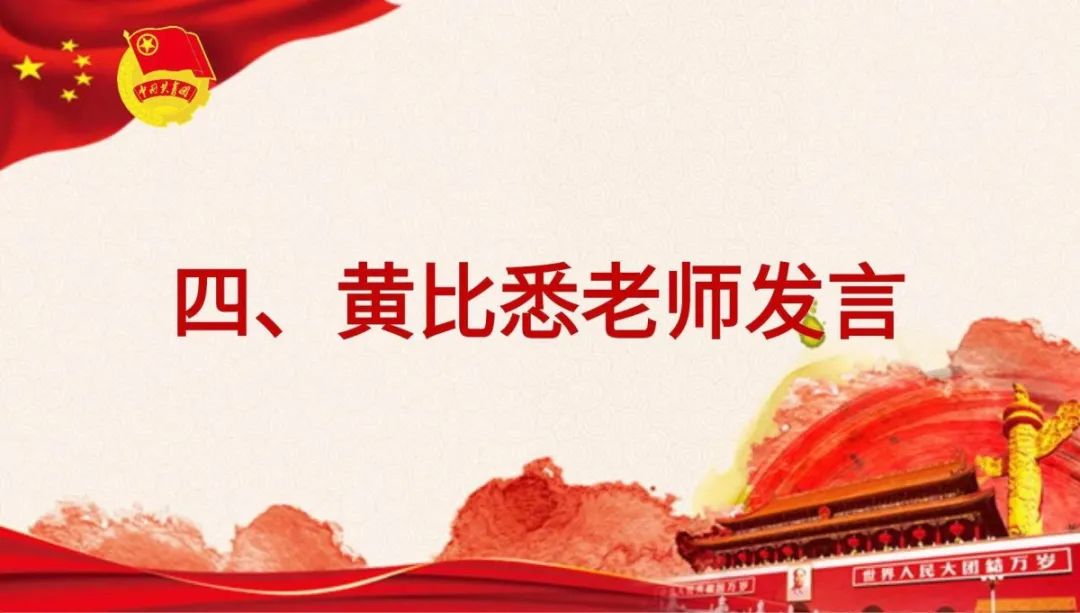 紧接着,黄比悉老师发言,团总支书记黄老师表示,疫情期间,学生干部应积极配合防疫工作,积极学习抗疫先进事迹。要做到不传谣,不信谣,不造谣,极传播正能量。黄老师还提醒学生干部们,疫情时期要做到合理分配时间,保持健康良好的生活节奏,协调好学习和工作,希望全体团学人可以保持凝聚一心,奋力前行!