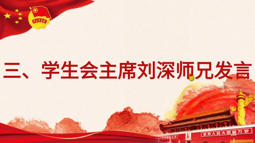 随后,学生会主席刘深同学希望学生干部们发挥好模范作用,在疫情期间带头学习,不落下学习任务和工作。此外,他还表扬了各部门克服困难照样按时完成工作的精神。