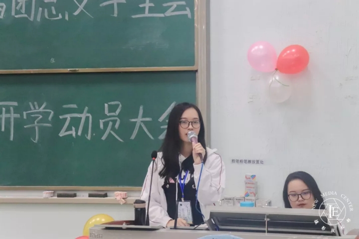 接下来由新闻部及辩论队干事郑嘉雯同学发言。她表示作为团学的一员,要反复鼓励自己,严格要求自己,要用最认真的态度对待部门的工作与学习。在新的学期里,作为学生不但要兼顾学习与工作,更重要的是超越昨天的自己。