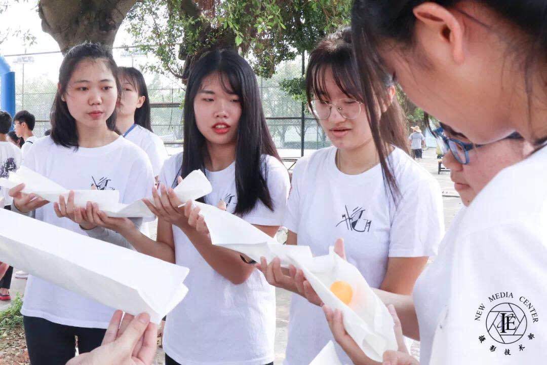 完成上述游戏后就到了终极游戏闯关四连,同学们需蒙眼转圈,走到指定地点;接着,他们需手持水杯接水并不断传递水,直至水量达到指定高度;之后,每组派出一人蒙眼踩气球,另一名队友提供语音帮助;最后则需要参与人员快速地完成绕口令。在组长的协调下,组员各司其职,在雀跃中结束了游戏。