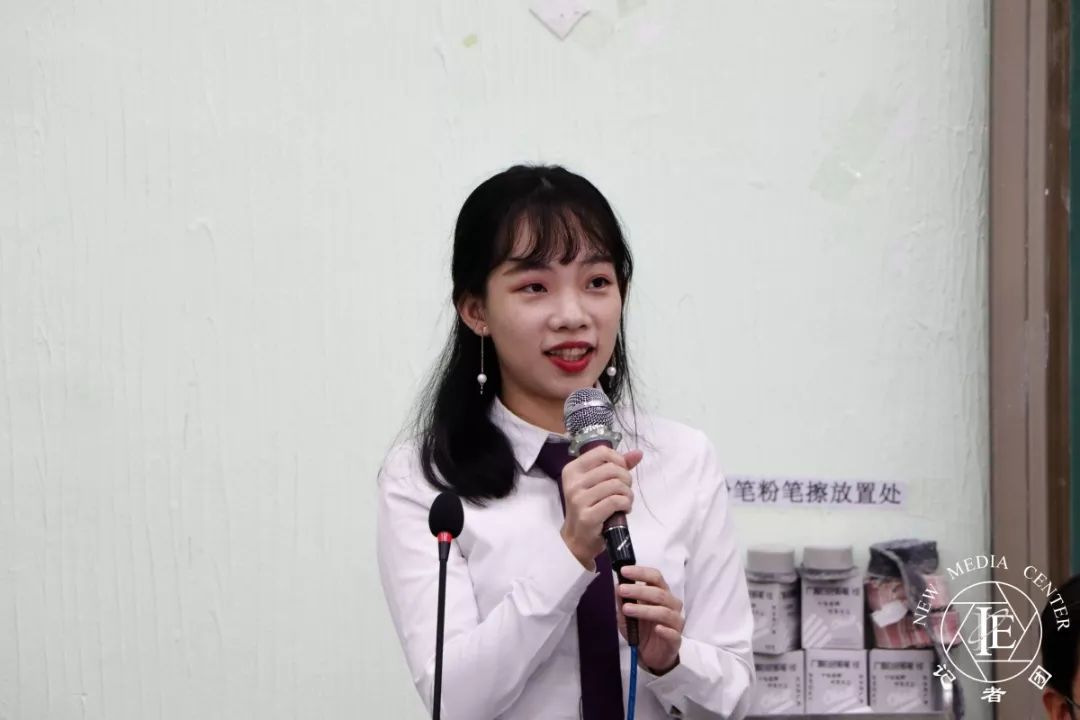 随后是何颖琪师姐作述职报告。何颖琪师姐主要讲述了过去一年各项工作的开展、工作内容以及成果。同时,她也指出学管过去一年里的不足之处。对此,她希望这一届的新成员吸取上一届的工作经验,扬长避短,取其精华,去其糟粕,加强与各班班长、助理班主任以及其他部门之间的交流合作,全心全意地辅助老师、服务同学,将学管的优良传统发扬光大。最后,她祝愿学管在新一届学生干部的带领下茁壮成长,更加辉煌。