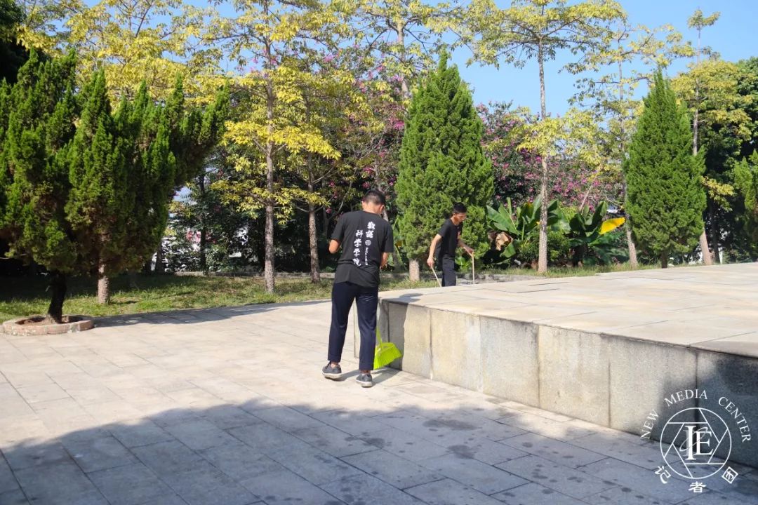 清晨,团员干部整理好物资后在校门口集合出发。同学们在团总支书记黄比悉老师的带领下走进增城革命烈士纪念碑。