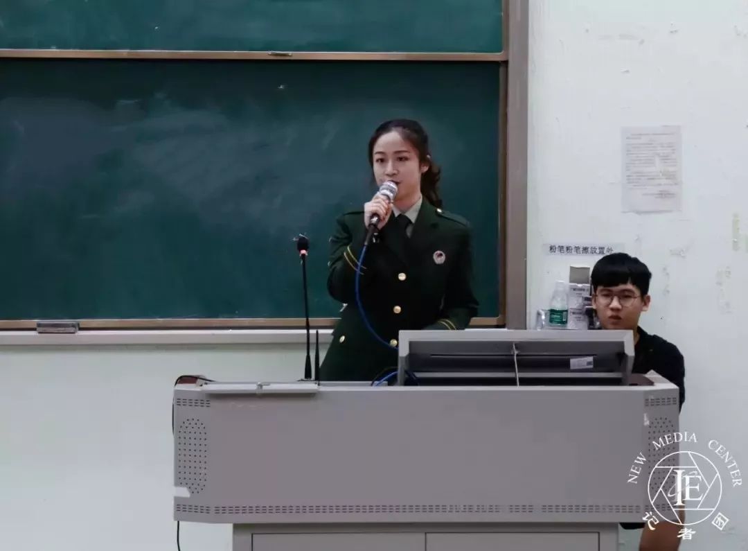 接着是陈美玲师姐发言。作为武警中队的通讯女兵,陈美玲师姐以自己的亲身经历告诉我们,想念家人时如何排解,遇到困难时如何面对。师姐的讲述展现了女兵的别样风采。