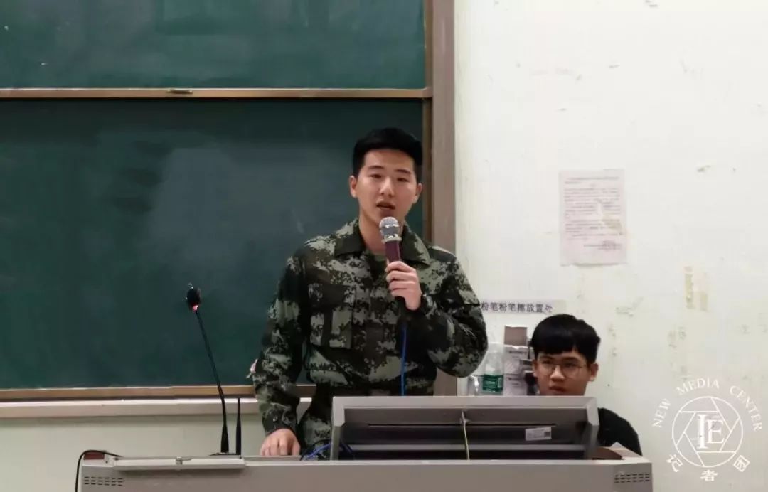 紧接着是冼淦良师兄发言。作为消防兵参军的冼淦良师兄,他向我们普及相关消防知识,讲述了他们心中怀有的光荣,表达了军人心中该有的使命感。