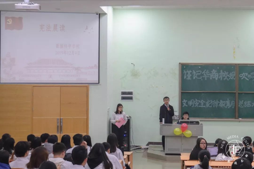 12月4日是全国宪法日,华商学院全校学习宪法,数据科学学院谢朋涛老师带领同学们开展了宪法宣读活动,大家都在用行动让数据科学学院变得更好。