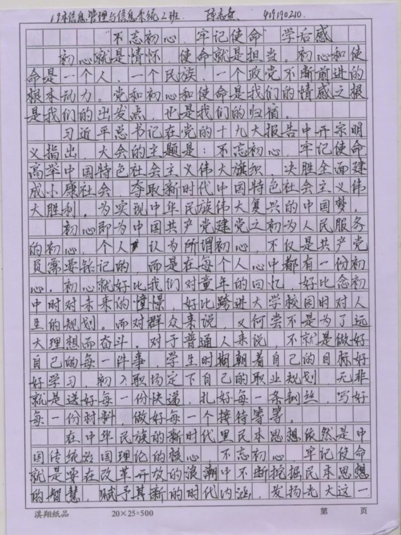 本次学习交流会让2019级的团支书们收获匪浅,他们纷纷写下了自己对于本次交流会的心得感悟。他们当中有的是谈论自己对于“不忘初心,牢记使命”这个主题的理解,而有的则是谈论当代青年与该主题的联系。最后,他们都谈及到,作为新时期青年,要加强学习,提高自身理论水平,为建设中国特色社会主义贡献一份力量。