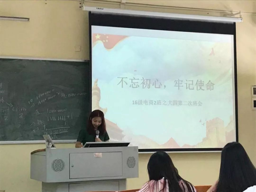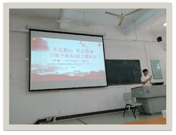 首先,班委为同学们介绍“不忘初心,牢记使命”的背景。并鼓励同学应该加强自己的专业知识,提高自己的能力,充实自己的生活,铭记自己的梦想,并时刻提醒自己要为之而奋斗。