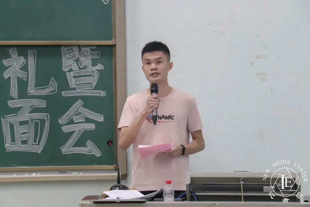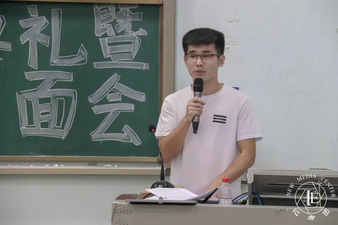 老生代表蔡榕楠同学上台发言,他向新生们讲述了自己大学的经历,他告诫同学们,在大学生活中,不能只做到“三点一线”,要多去丰富自己的大学生活。他还表示,要学会自主学习,不只是学习课本上的内容,还要多进行一些课外的扩展。最后,他向新生们提出了自己对大学生活的建议,希望新生们可以拥有美好的大学生活。