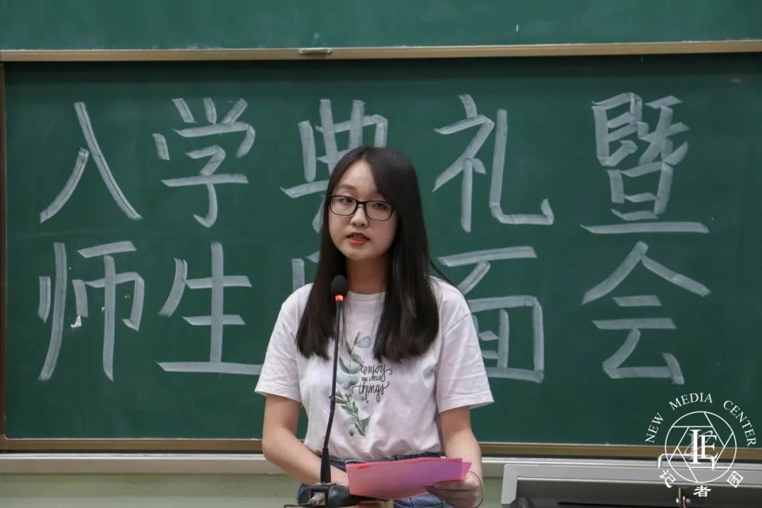 新生代表沈紫绮同学上台发言,她表示,大学是人生的一大转折点,是我们圆梦的地方。她承诺会秉承华商厚德,励志,博学,创新的校训,做到勤学好问,敢于创新,严格自律,不负老师父母的期望,开拓属于自己的美好人生。