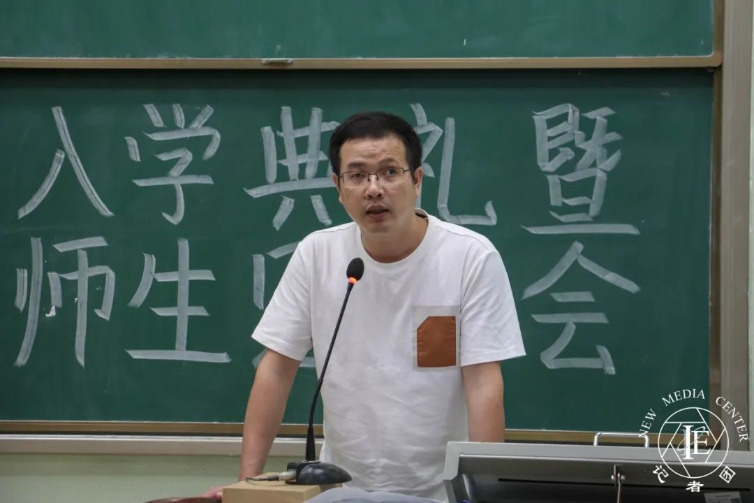 老师代表颜远海老师上台发言。他告诉新生们,迈入校园的那一刻起,就要树立远大的理想,同时要有面对困难的勇气。紧接着,他送给新生们一句话:“多为成功找方法,不为失败找借口”。最后,他祝福新生们拥有幸福愉快的大学生活,期待四年之后,看到新生们可以在华商,收获硕果累累。