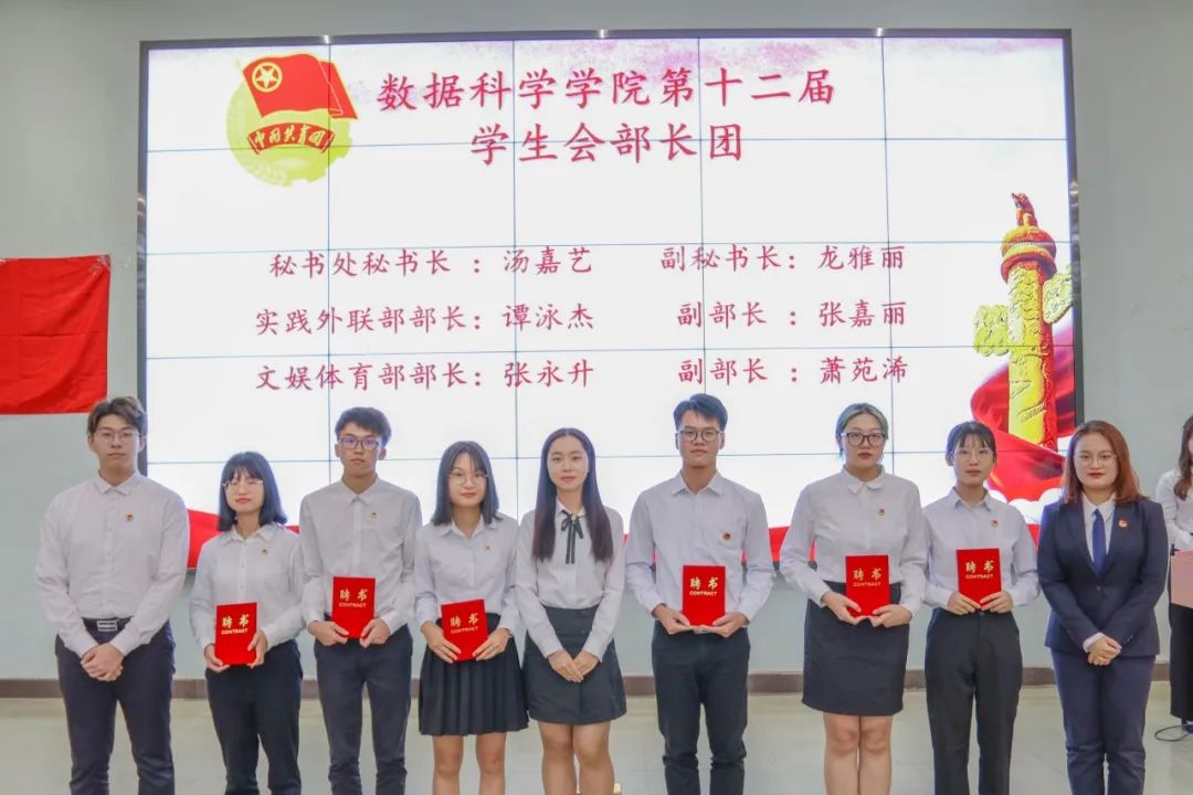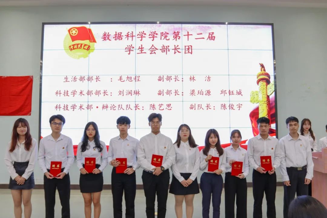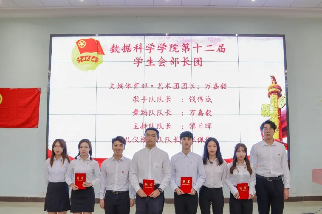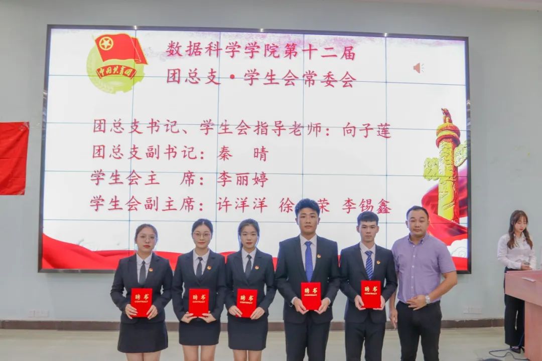 莅临本次大会嘉宾:数据科学学院党总支书记,伟德国际副院长蒋大锐老师;数据科学学院第十二届团总支书记,学生会指导老师向子莲老师;学生事务管理与服务中心指导老师蓝光进老师;数据科学学院辅导员黄比悉老师;数据科学学院辅导员张雅茹师姐;数据科学学院辅导员欧阳绮琪师姐。