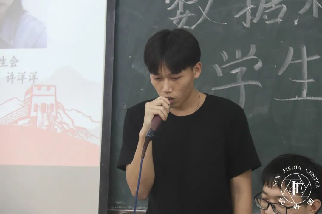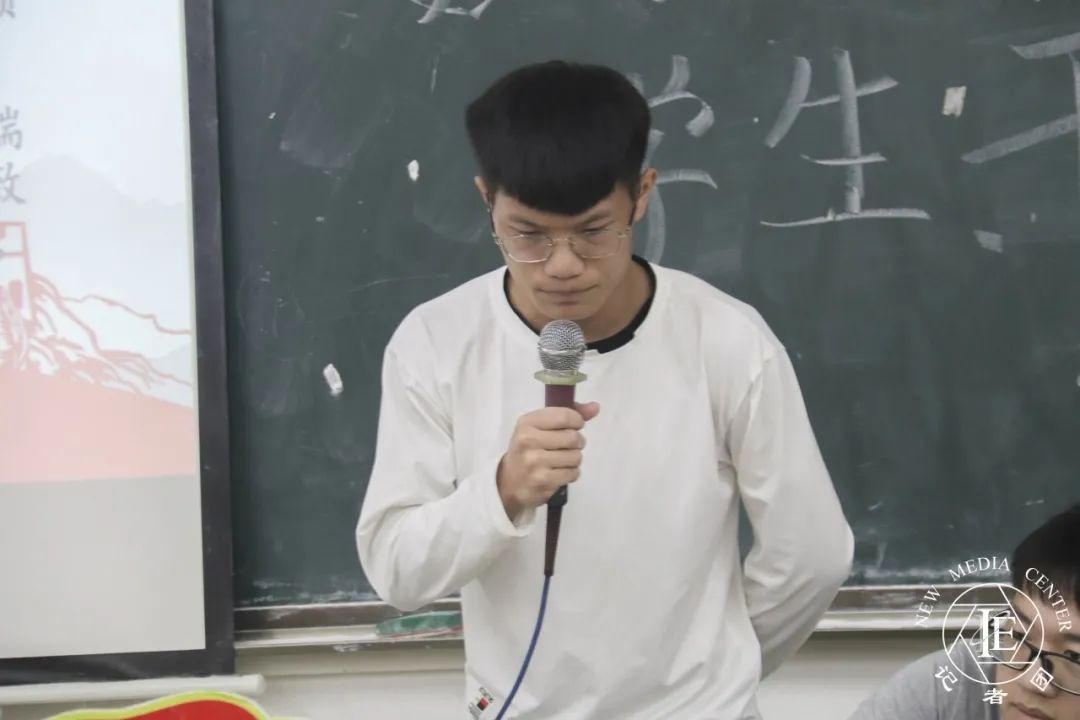 第二项议程,团总支·学生会纪检部部长发言。团总支·学生会纪检部部长冯梓炫向学生干部们介绍了数据科学学院的领导老师以及组织常委,同时介绍了各个组织之间的工作。紧接着,他向学生干部们强调了作为学生应该注意的规章制度。他希望全体的同学能发挥好学生干部的积极带头作用。