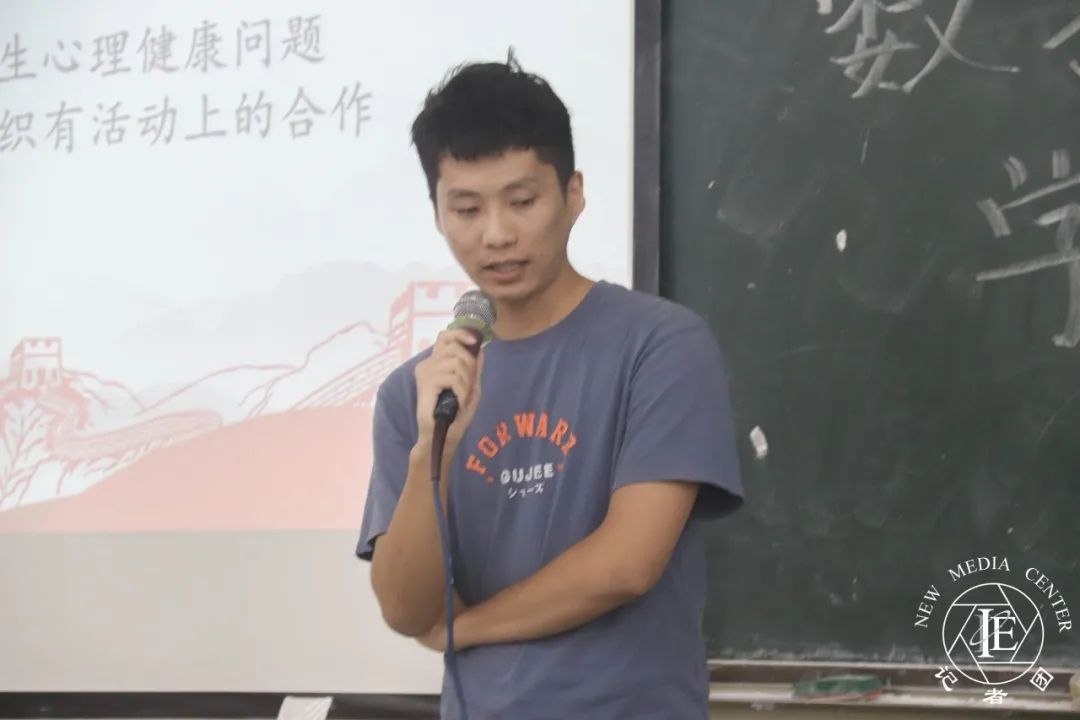 第七项议程,心理健康站代表发言。心理健康站代表许泽键表示心理健康站是保证学生心理健康的屏障,是为学生疏导心理健康问题的场所。同时,他提出在工作上各大组织如果发现有同学存在心理健康问题,可以将其反馈给心理健康站。他希望能够共同努力将我院的心理健康工作做的更好。