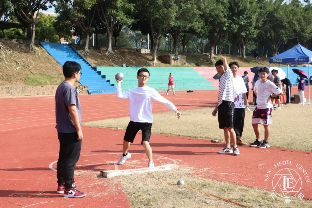 蕴含毅力与耐力的铅球。手指紧握沉重的铅球,那铅球上凝聚着选手们的心血,他们的右膝微微弯曲,积攒着力量,瞄准时机再将铅球推出去,推出对胜利的渴望,推出拼搏的力量。铅球在空中飞跃着,拼搏的力量也在空中流动着,每一次的投掷都是激情的澎湃,每一次的落地都是努力的结果。