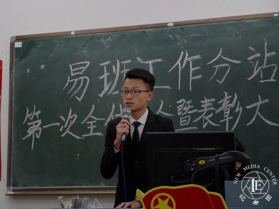 数据科学学院蒋大锐书记致辞蒋大锐书记首先感谢易班工作分站的老师与学生干部们所付出的努力,同时对易班工作分站在过去一年里取得的成绩表示祝贺。他希望易班工作分站成员进取创新,相互配合,通过易班这样一个服务平台为同学们开展活动,为同学们在学习、生活、工作提供展示自我、锻炼自我的机会。最后,他给同学们提出了几点要求和希望:一、明确目标。明确自己所具备的素质,应完成的工作,能得到的进步,朝着自己的目标去努力。二、做一个有心的人。即有情怀,工作中要投入自己的情感,要认真对待工作。三、注重自身素质的提升。要不断创新,让数据科学学院易班工作分站的工作更有特色。四、要与各个组织与班级加强联系。协同老师一起把数据科学学院易班工作分站的工作做得更好。五、在学习中工作,在工作中学习。在大学中展示自己的同时能够有所收获。