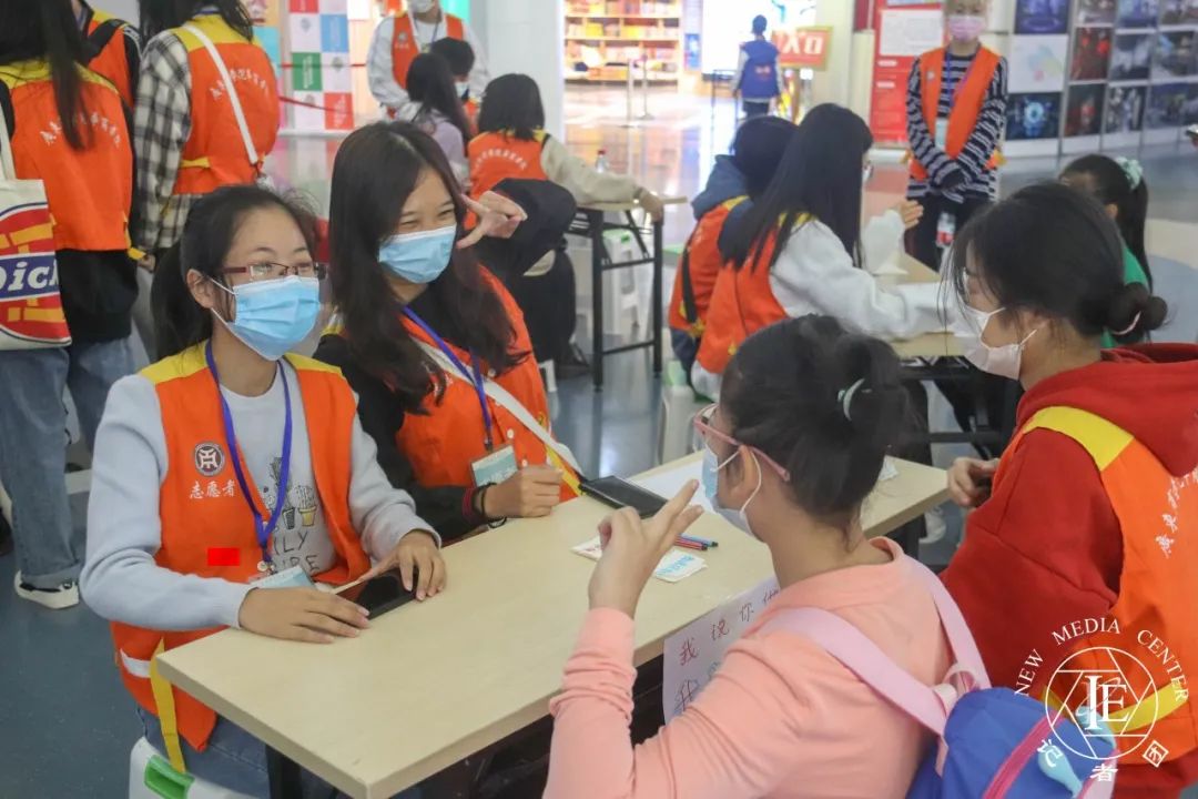 志愿活动进行过程中,志愿者们认真负责,语言平和亲近,耐心地与小朋友们进行游戏,并时刻注意着小朋友们的安全,帮助孩子们领取到他们心仪的礼物。在志愿者们认真负责的工作态度下,让家长与小朋友们体验到我们“与时俱进数科人,共创科技防疫魂”的宗旨。