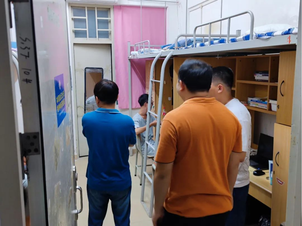 随后,学院领导一行来到西11栋男生宿舍,学院常务副院长赖庆副教授与学生亲切交谈,询问学生是否存在困难或疑惑。他鼓励同学们珍惜学校资源,把握青春时光,努力学习,积极进取,成为对社会、对国家有贡献的有用之才。