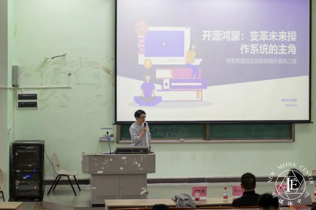 张彦博主任的讲座内容主要涵盖了大学生的开源第一课、走进开源鸿蒙世界,开启万物智联新征程以及开源与大学生的职业发展三个部分,通过介绍开源软件的起源和发展,普及了开源文化,结合当代时代的发展以及日常生活场景导入,详细解读开源鸿蒙系统核心技术和应用场景,他着重提到同学们应紧跟时代的发展,根据所学专业对应所需岗位职能要求来提高个人的专业水平,提高个人的创新能力和实践能力。