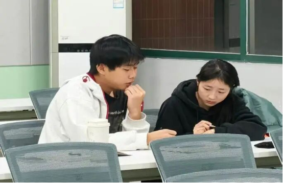 在这里,同学们围绕课业难题展开务实讨论。帮扶同学负责讲解重点、梳理思路,有需要的同学则专注聆听、积极提问。大家共同分析题目、分享学习方法,在相互答疑解惑中巩固知识、提升信心。在交流与探讨中,个人的思考汇入共同的河流,孤独的奋战化为并肩的航行。这一段相伴而学的时光,不仅为眼前的期末积蓄力量,也成为冬日校园里一份真挚而明亮的记忆。