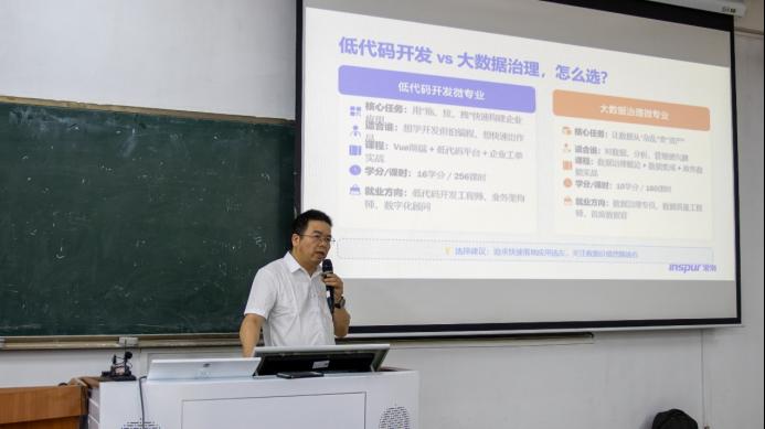 宣讲会上,浪潮集团资深专家对两个微专业方向进行了深入讲解。低代码开发微专业聚焦“拖、拉、拽”快速构建企业应用,适合想学开发但怕编程的学生,课程涵盖Vue前端、低代码平台及企业工单实战。大数据治理微专业则强调让数据从“杂乱”变“资产”,适合对数据分析感兴趣的学生,课程涵盖数据治理概论、数据集成技术及政务数据实战。专家指出,低代码开发岗位年增长率达40.5%,起薪约8600元/月;数据治理人才缺口2026年预计超80万,发展前景广阔。