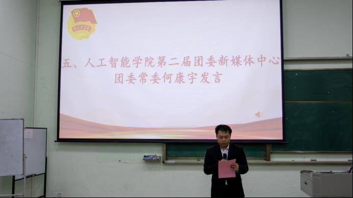 何康宇师兄分享新媒体中心成果:在去年公众号上累计发布730余篇推文,全程记录校庆、校运会等重要时刻。新学期将坚守思想阵地、提升宣传质量、加强团队协作、勇于形式创新,持续传递学院正能量。