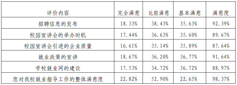 为建立毕业生就业对人才培养的反馈机制,我校从2010 年起每年开展毕业生就业满意度调查,采取问卷调查为主,谈话走访为辅的方式,对毕业生及其用人单位进行调查,形成毕业生就业情况分析报告。2012 年起开始增加开展就业指导工作满意度调查工作,形成毕业生对就业指导满意度分析报告。这些报告为我校的专业设置、教育教学改革、人才培养提供了有价值的信息,为学校在招生计划安排、专业设置、学科调整、教育教学改革、人才培养等方面提供参考依据。