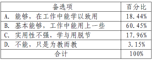 问题:您认为学校的教学能否体现出“应用型人才”的办学定位?