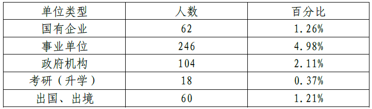 目前,我校毕业生的就业主要集中在中小型企业,到政府机构、事业单位、国有企业就业的比例不高。我校将进一步优化人才培养模式,提高毕业生的综合素质,在保持高就业率的基础上,努力提升毕业生的就业层次。