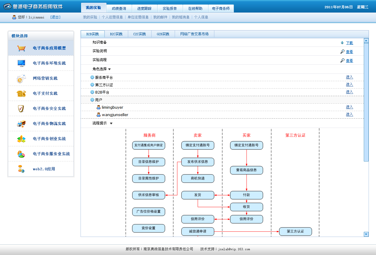 学院始终重视对专业实验室的建设,逐步增加投入,购置先进实验软硬件,提高设备利用率,深化实验室管理。我院于2014年10月21日召开了14级教学计划修订研讨会上确定将“电子商务”课程作为全校的公共课开设,根据我院14级本科教学计划统计:涉及到8个系的28个专业(含方向)开设了《电子商务概论》课程,暨时全院至少有72个教学班同时使用这个平台。该平台除容量大、效率高的特点外,该平台的虚拟化功能几乎涵盖了电子商务的所有内容,同时还具有远程访问的功能,学生除在实验室使用外还可通过校园网远程登录,真正打破了时间和空间的限制。该平台的投入使用标志着我院综合实验教学的质量有了新的飞跃。
