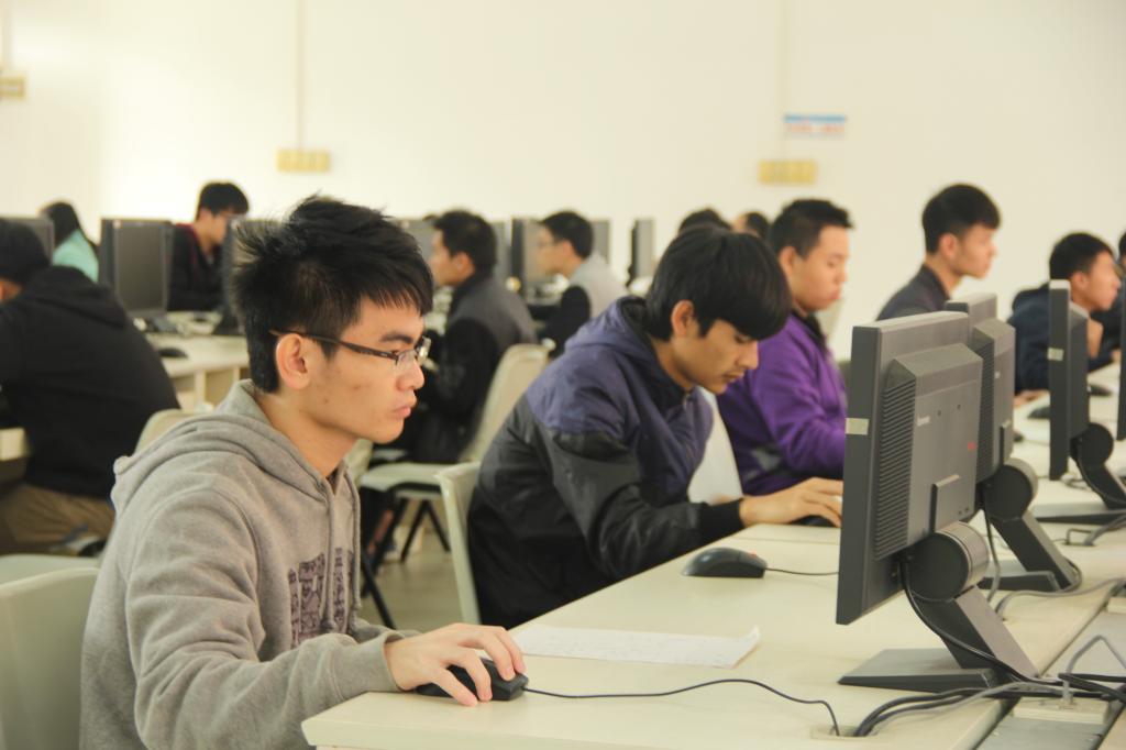 在考试期间。细观全场,考生们都在认真地答题,每一位同学都紧盯着电脑屏幕,生怕漏掉什么信息,错过哪一道题。他们手中的笔不停地转动着,紧紧的把握住一分一秒,丝毫没有一点松懈。