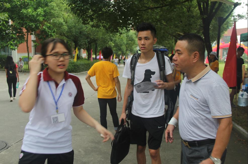 朝阳初起,草儿抬头,青春的风一股劲儿涌进了学院。带着雀跃而充满期待的目光,踩着忙碌却轻快的脚步的新生们,在家人的陪伴下提着大包小包走进来,他们的眼睛里,都是梦想的模样。在华商的正门,学院的志愿者们举着各系的牌为新生和家长指引道路。在系大本营处,新生完成签到,寄放行李后,便有工作人员带他们去图书馆进行校对、缴网费或拿宿舍条后,返回大本营拿行李,再由工作人员带领他们回到自己的宿舍。每一个小流程都有迎新工作人员为他们指引,使得整一个迎新流程井然有序的进行着。