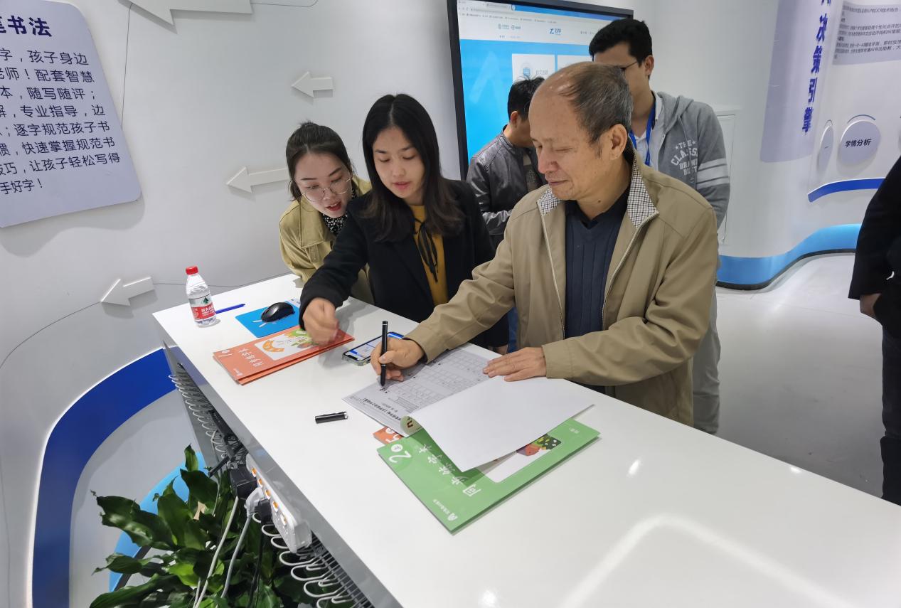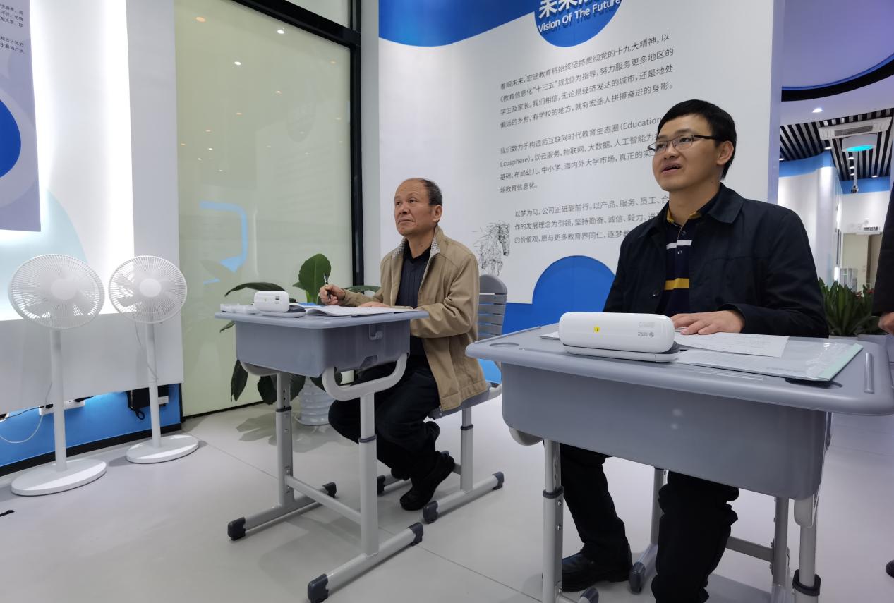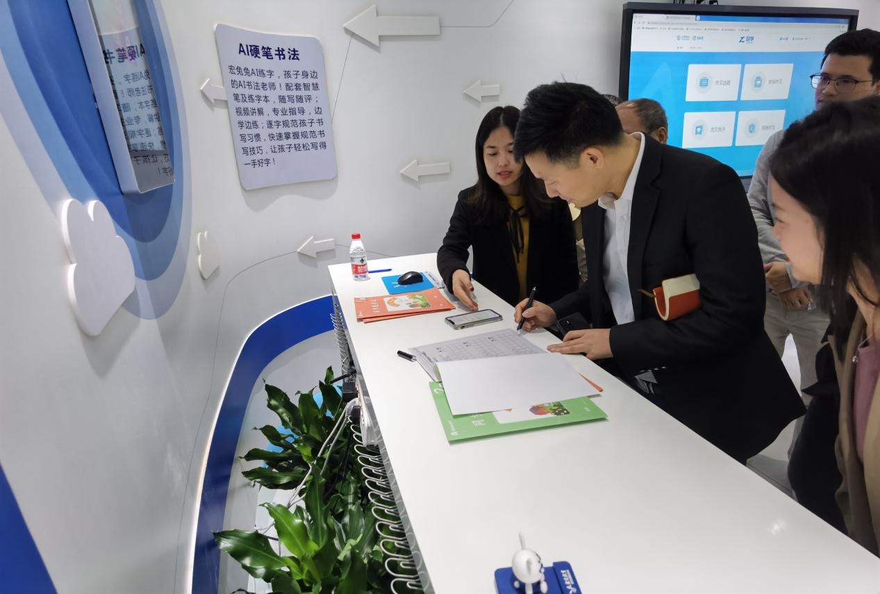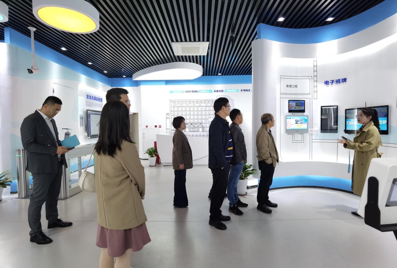 在宏途教育网络科技有限公司相关人员的陪同下,赖院长与各位老师和主任先后了解体验了其推出的校园安全管理平台,智能物联网平台,精准化AI教学体验以及智能AI书法等项目内容