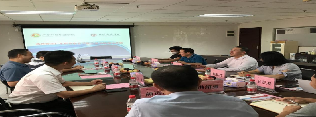 2023年9月4日,广东科贸职业学院信息学院院长钱英军、副院长朱冠良、副院长王磊一行来到伟德国际victor1946数据科学学院调研交流,受到学校吕峻闽副校长热情接待,陪同交流的还有我院常务副院长赖庆、学校招生办主任姚见花、院长助理杨波、计算机科学与技术系主任黄富平、软件工程系副主任王宏杰、数据科学与大数据技术系主任颜远海、人工智能系副主任洪绍勇等。