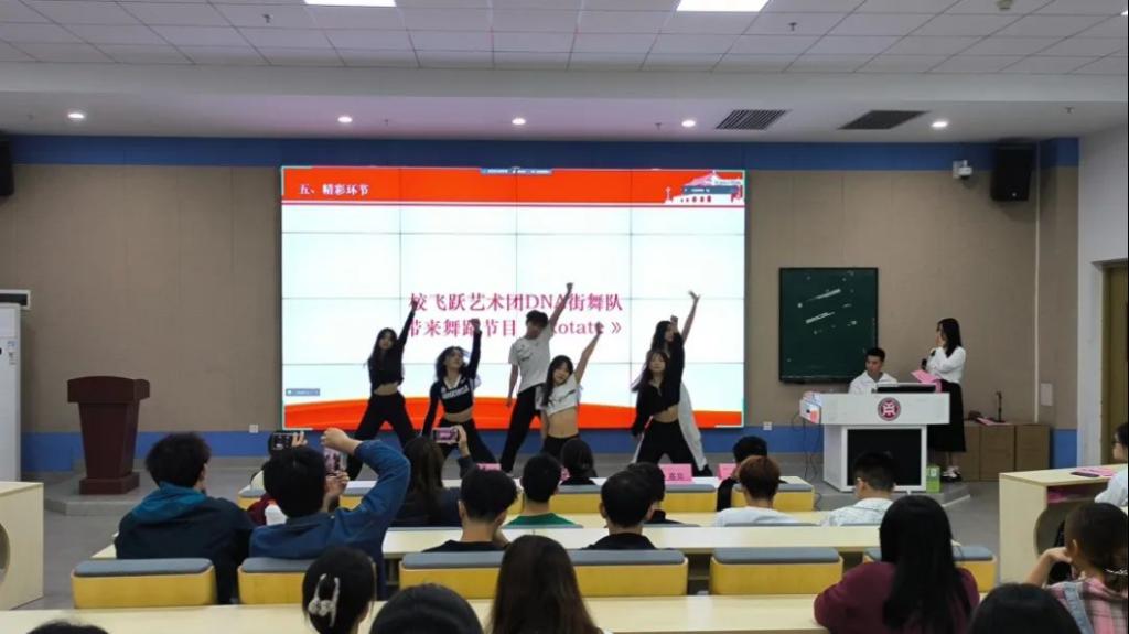 舞动青春,共享快乐,舞蹈是一种超越言语的交流方式,它能够突破文化和语言的障碍,传达情感和思想,舞蹈能够唤起我们对美的追求和对生活的热爱,让我们感受到生命的活力与美好。由校飞跃艺术团DNA街舞队为现场带来舞蹈《Rotate》。