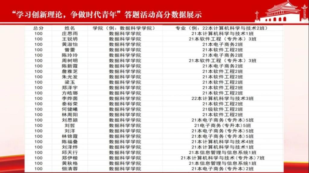 新时代青年要勇敢地肩负起强国的重任,勇敢地面对困难,勇于承担责任。为增强新时代青年的社会责任感和使命感,以积极向上的精神面貌投身祖国建设,为实现中华民族伟大复兴的中国梦,数据科学学院团委在本月举办了“学习党的理论创新,争做时代好青年”答题、“学习党的理论创新,争做时代好青年”班级主题团日活动,下面让我们一起来回顾一下十一月团生活动。
