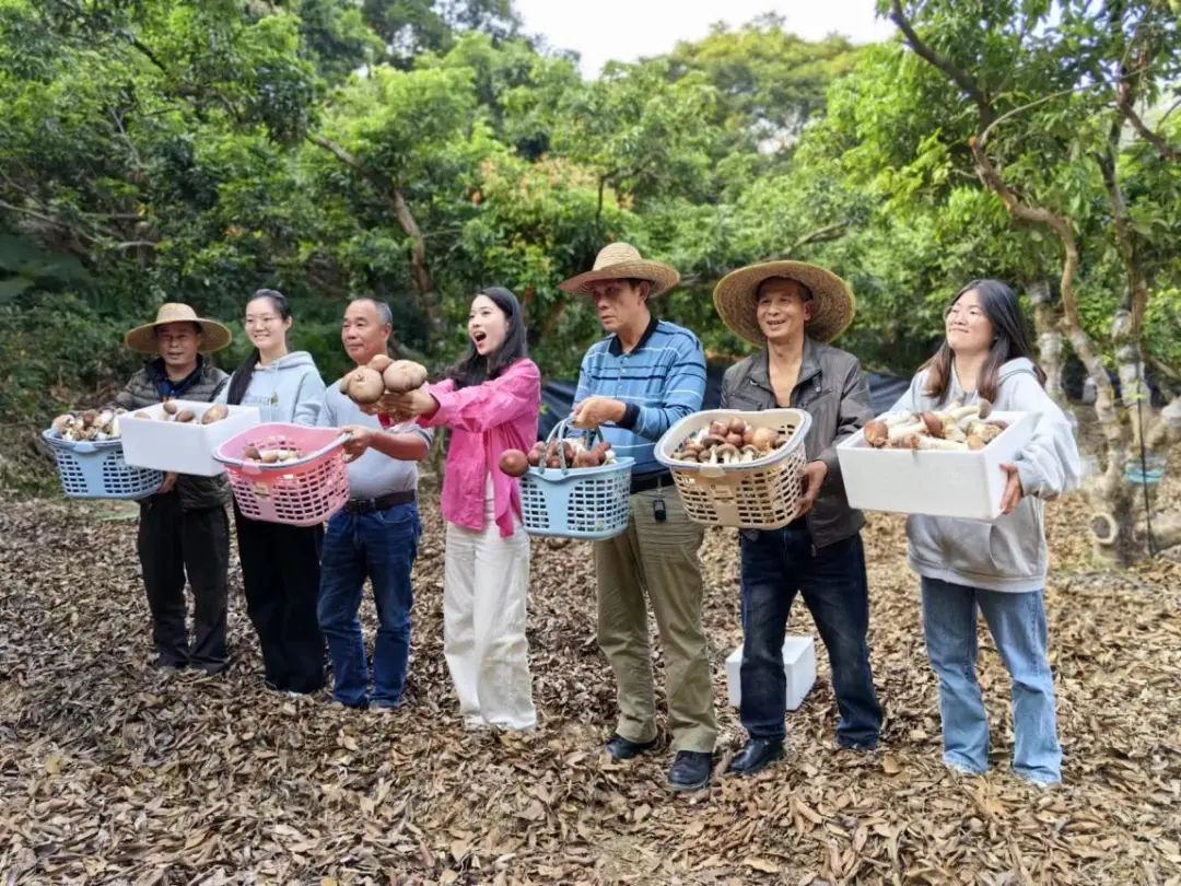 首先在广州华立科技职业学院李向林教授的介绍下,深刻地认识了荔枝石斛和荔枝松茸的种植技术、产品功效,并在马村长的带领下参观了荔枝松茸的基地。