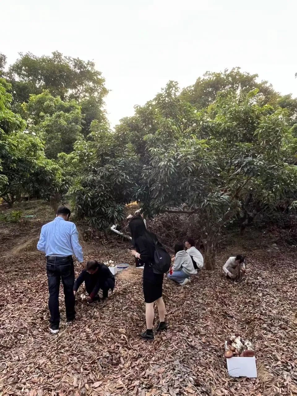 为了“深化产教融合,助力乡村振兴”,2024年1月7日,伟德国际victor1946数据科学学院电子商务系专业负责人孟晓明教授、电子商务系主任李加军老师、姚仙丽老师带领9名学生一同前往广州增城区荔城街庆丰村马屋村的荔枝果园开展直播合作基地考察。