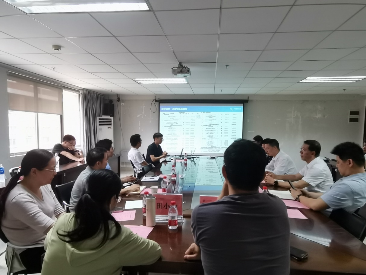 戴经国院长在会上对各位来宾表示了热烈的欢迎,并概述了实验室建设的当前进展。随后,百度网讯公司的代表详细阐述了算力中心、人工智能创新实验室等的设计方案;中软国际公司的代表则分享了鸿蒙创新实验室等的设计理念;湖南湘瑞电子科技公司的代表介绍了物理实验室等多个设计方案;中汇智慧云解决方案代表介绍了软件测试实验室的建设方案。这些方案不仅展现了企业各自的技术特色和优势,也体现了他们与学校合作共建实验室的坚定决心。方案的主要亮点包括: