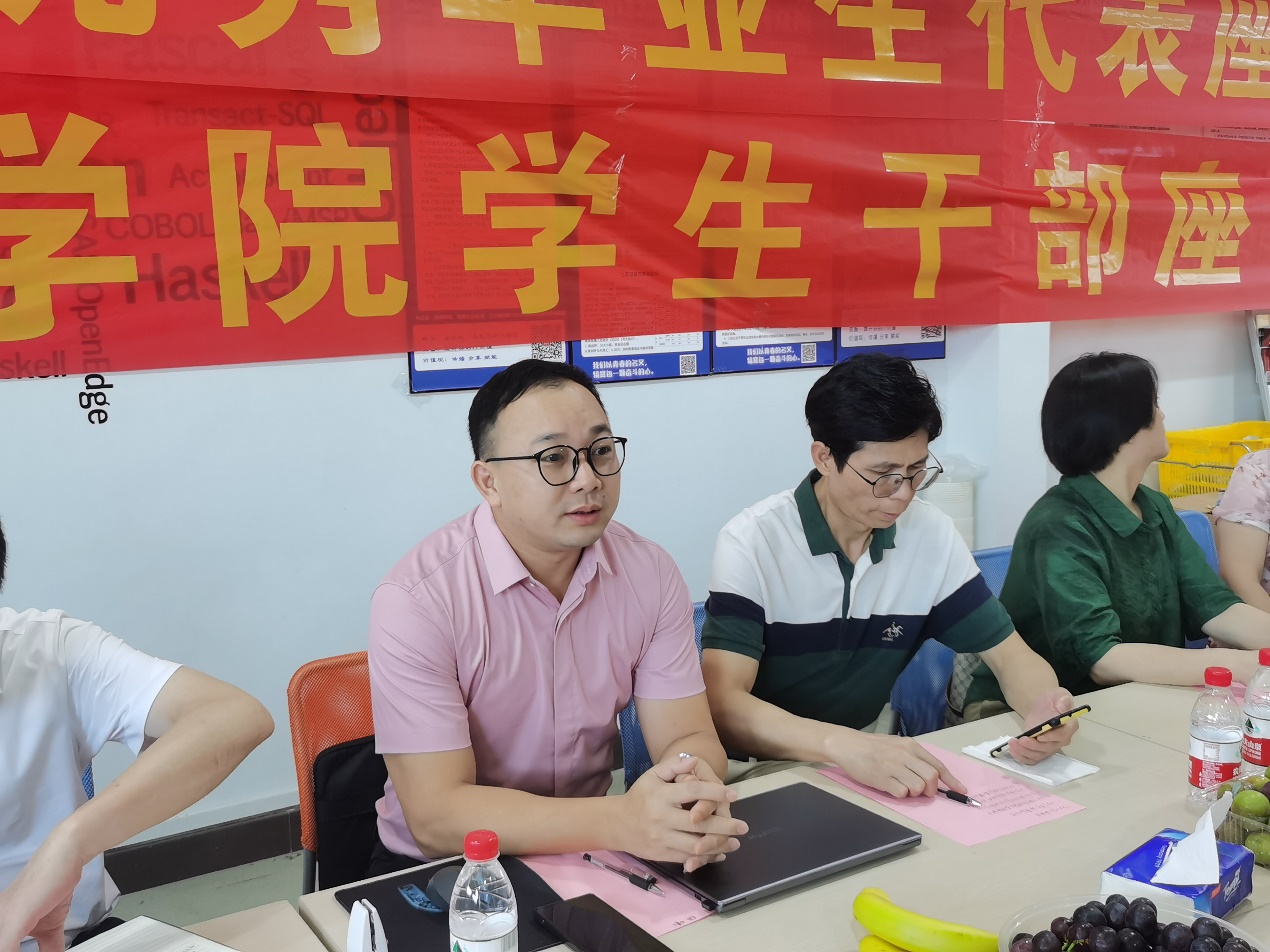 座谈会伊始,戴院发表讲话,对毕业生们四年来的成长和进步表示祝贺,并对他们即将开启人生新篇章表示祝福。戴院长强调,毕业生们在大学期间不仅学习了知识,更重要的是形成了正确的人生观和价值观,希望他们继续保持优良的品质,不断提升自身能力和素养,在未来的学习和工作中发挥更大的作用。