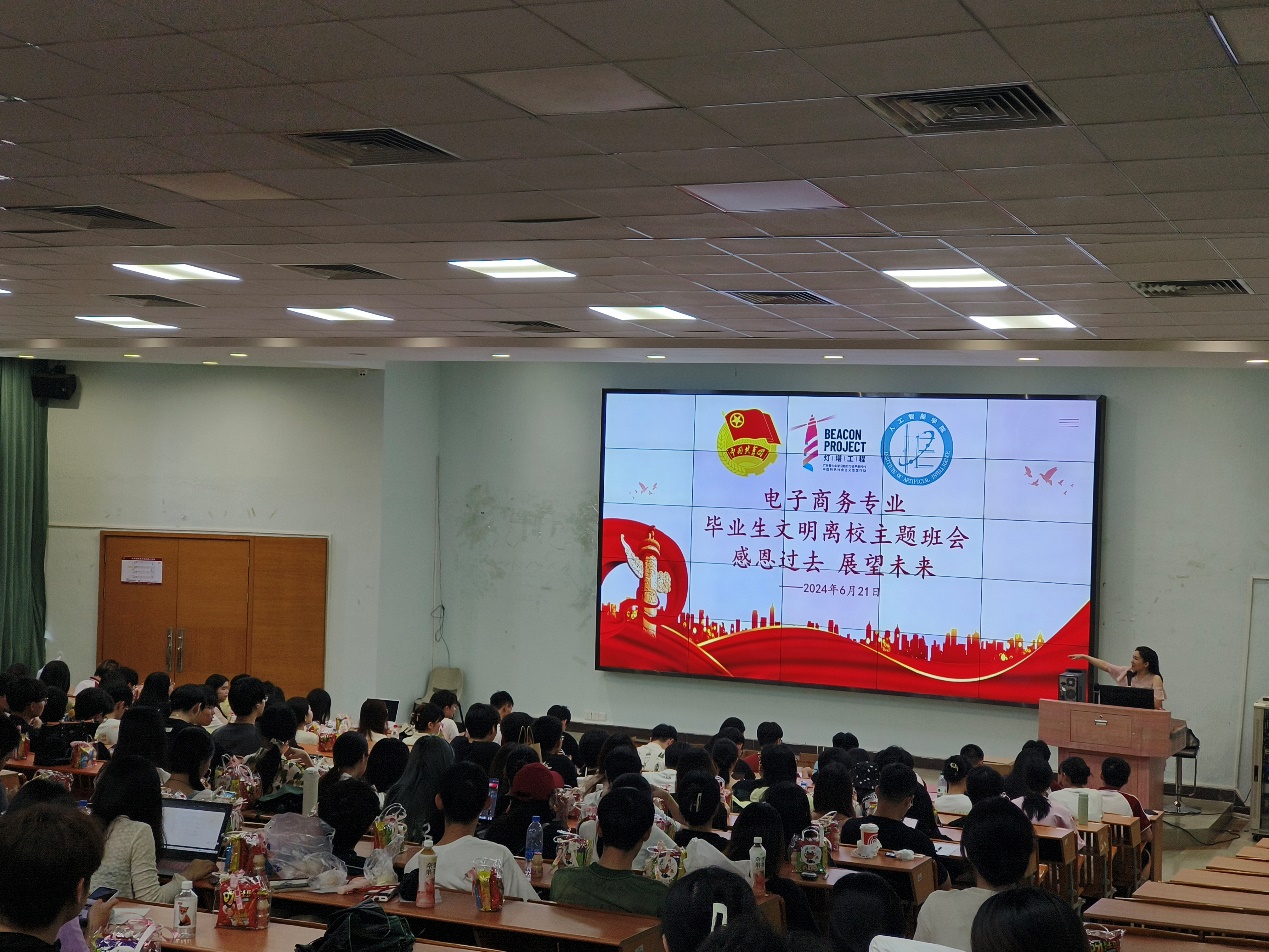 近日,我院举办了毕业生主题班会活动,旨在为即将离校的毕业生们提供一个全面、细致的离校指南,同时进行感恩教育、安全教育和文明离校教育,为他们未来征程送上最真挚的祝福和嘱托。