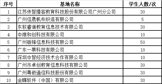 和恒拓开源(天津)信息科技有限公司广州分公司、广州信晟帆布织造有限公司、广州励锋信息科技有限公司、江苏传智播客教育科技有限公司广州分公司等10家单位合作共建校外实习基地。